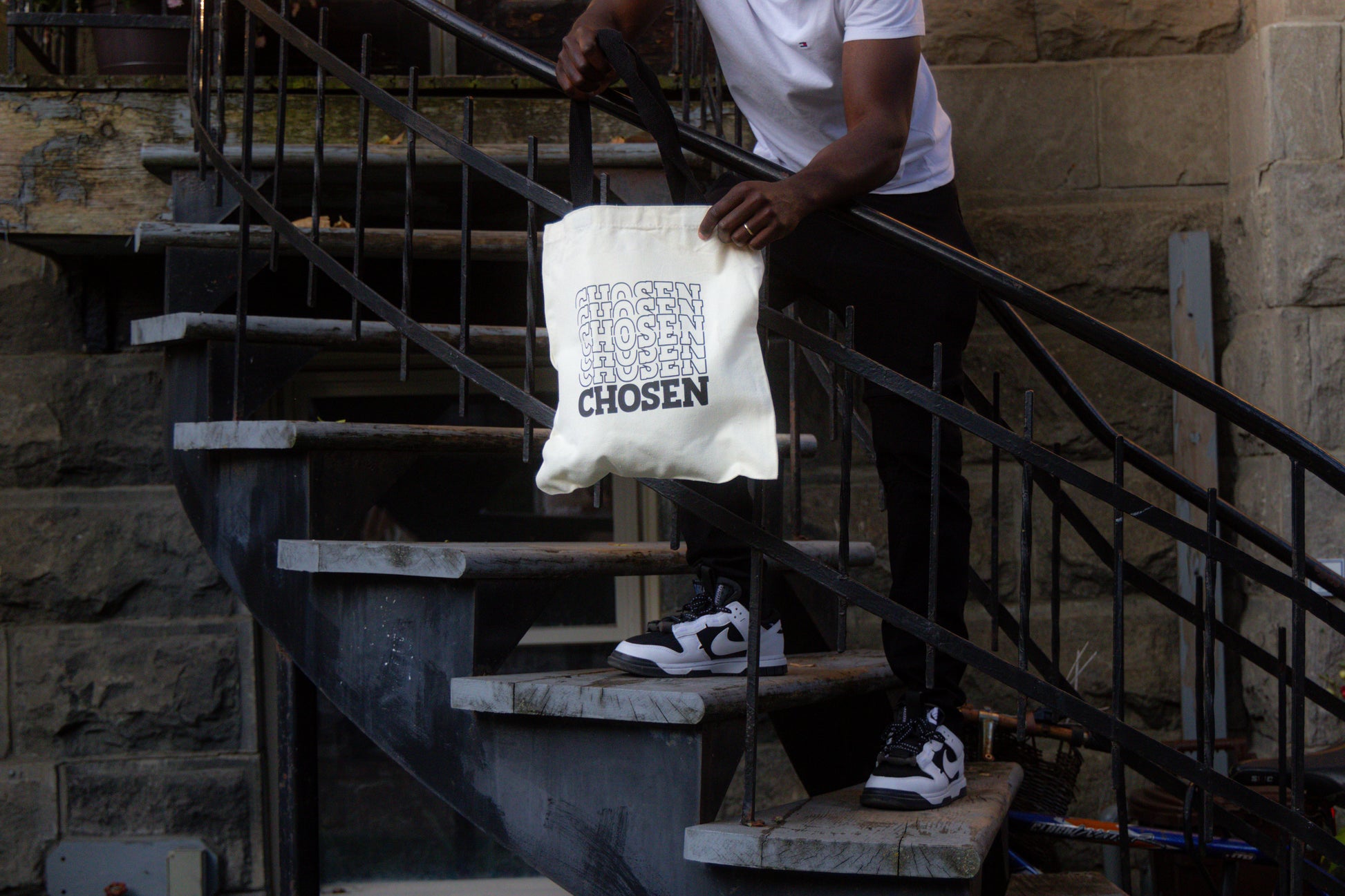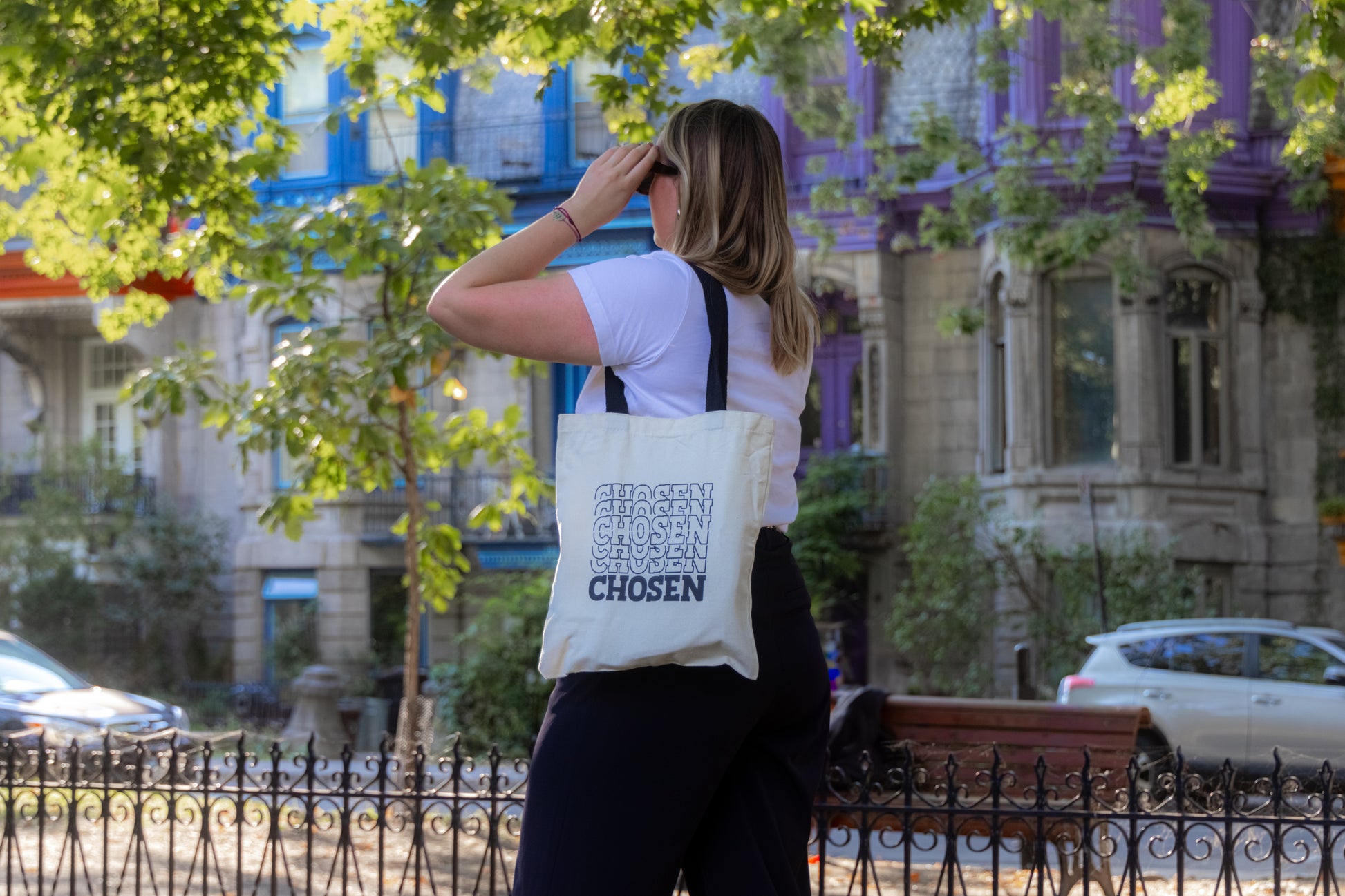 Imaginez un tote bag simple, appelé "CHOSEN". Ce sac est plus qu'un accessoire pratique; il est un rappel constant de votre valeur et de votre appartenance.